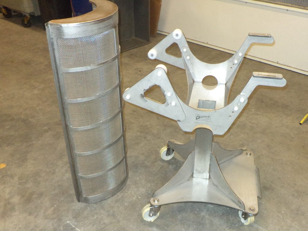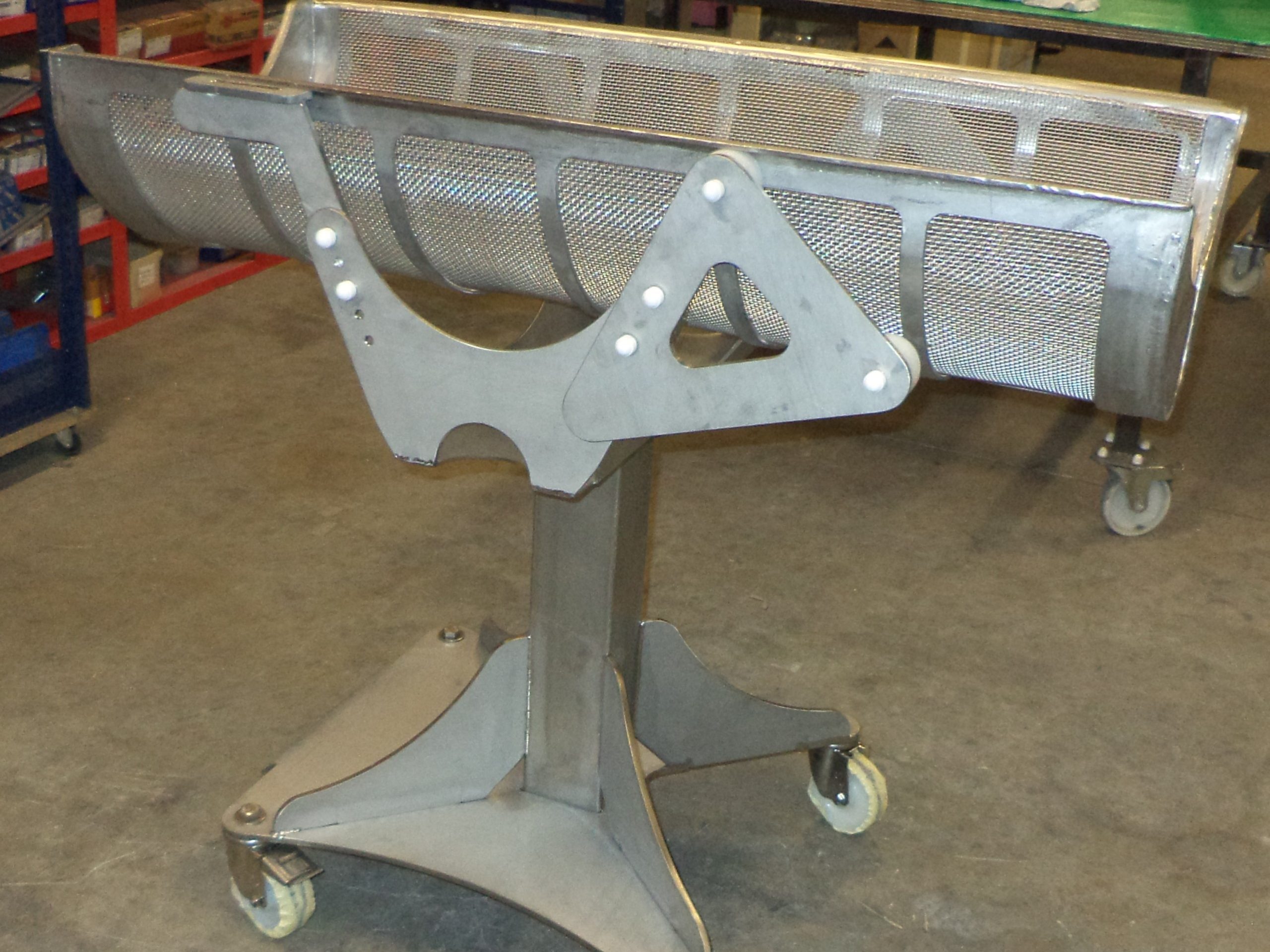 Outillage tout inox permettant de pourvoir manipuler, charger et décharger des tamis de plus de 30kg sans efforts.
