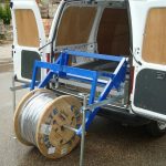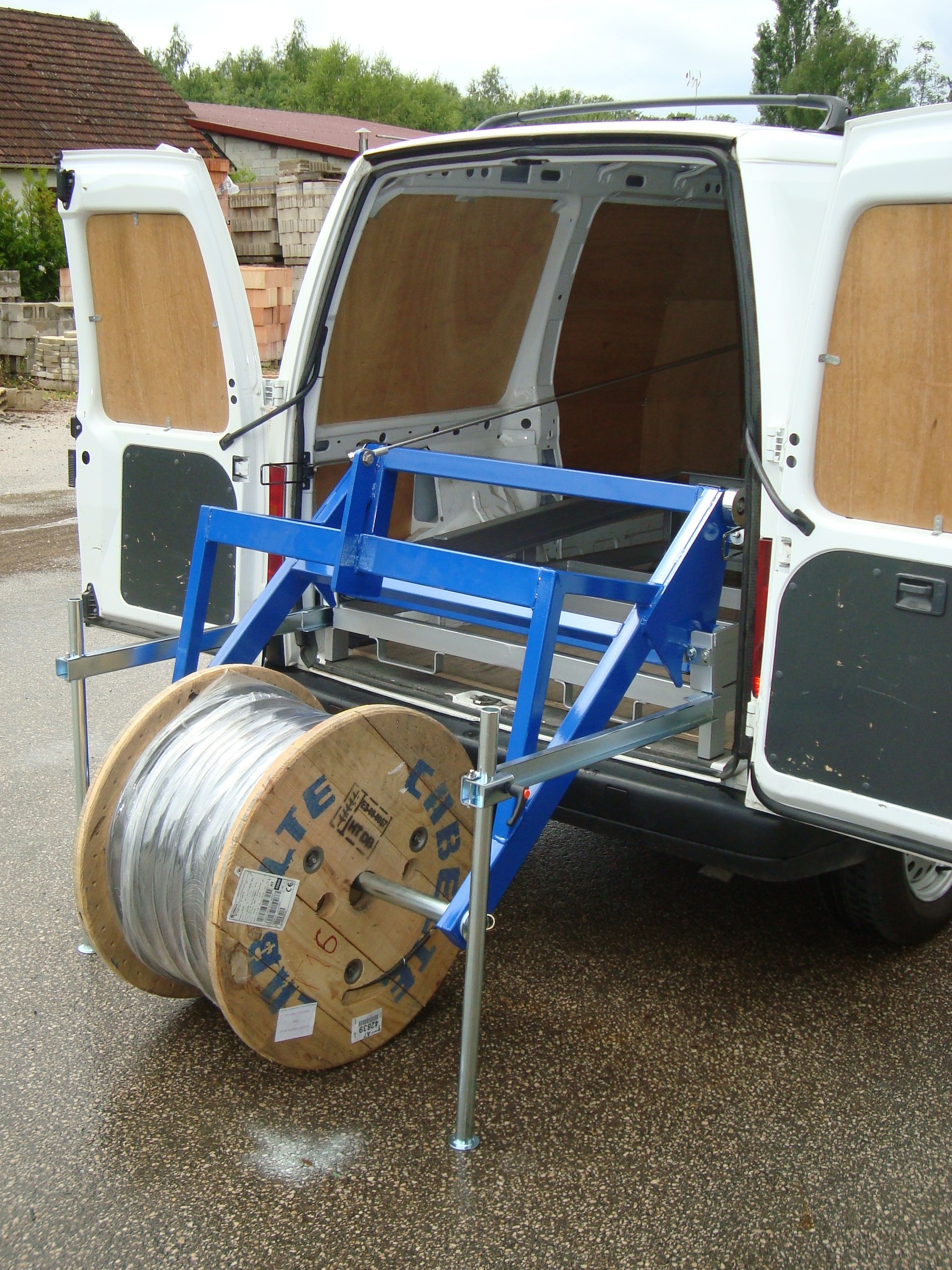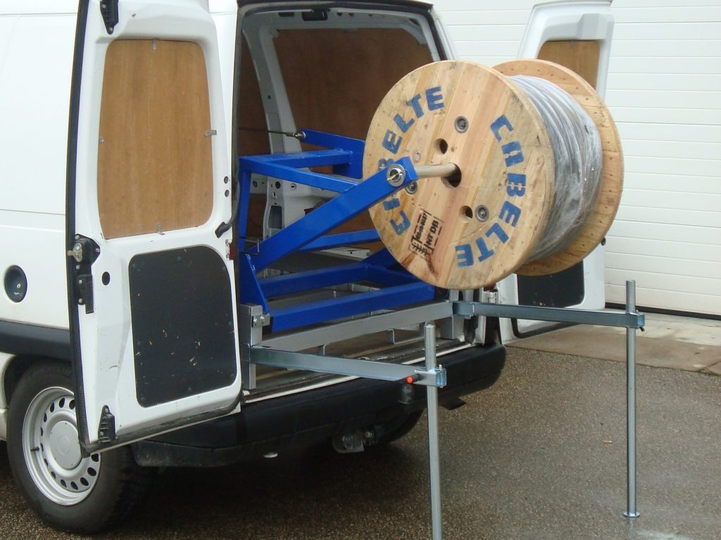 Outillage amovible permettant de charger, décharger, et dérouler des tourets de câbles, sans efforts, depuis un utilitaire.