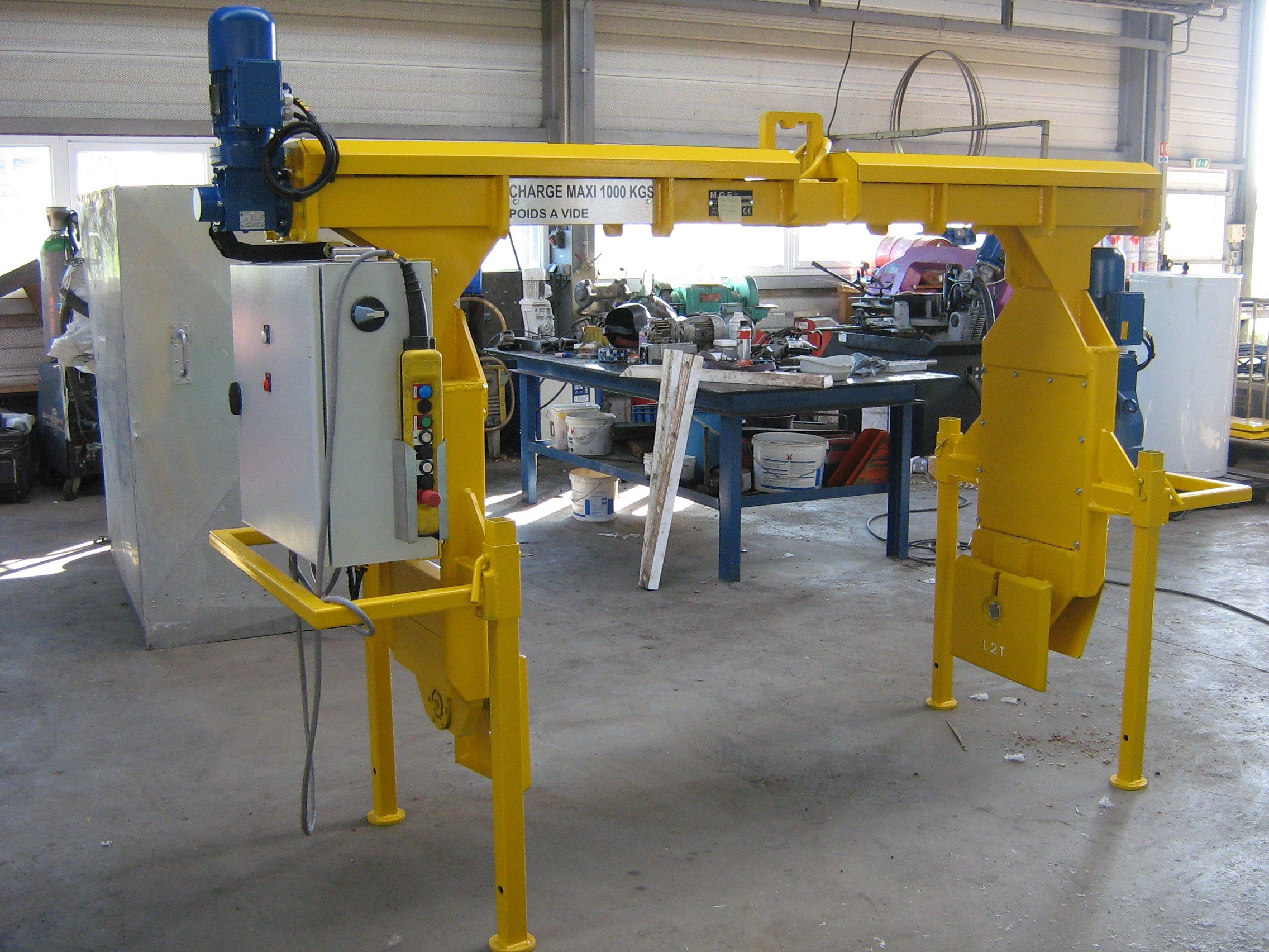 Palonnier pour la manutention et le retournement de blocs bétons de 500kg.