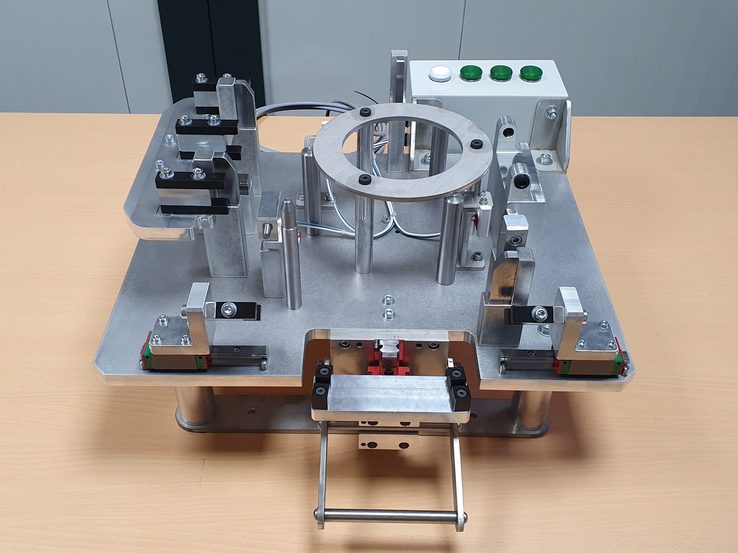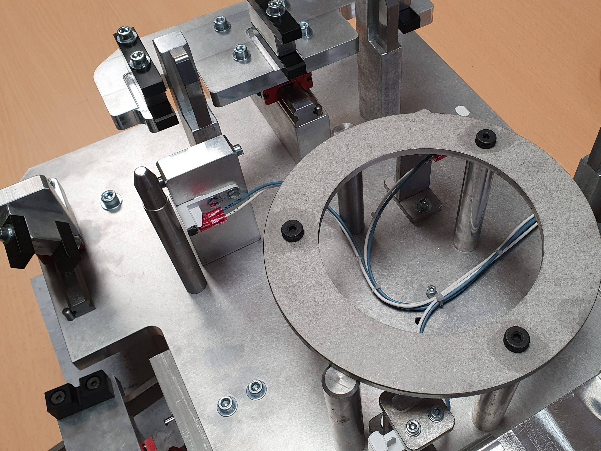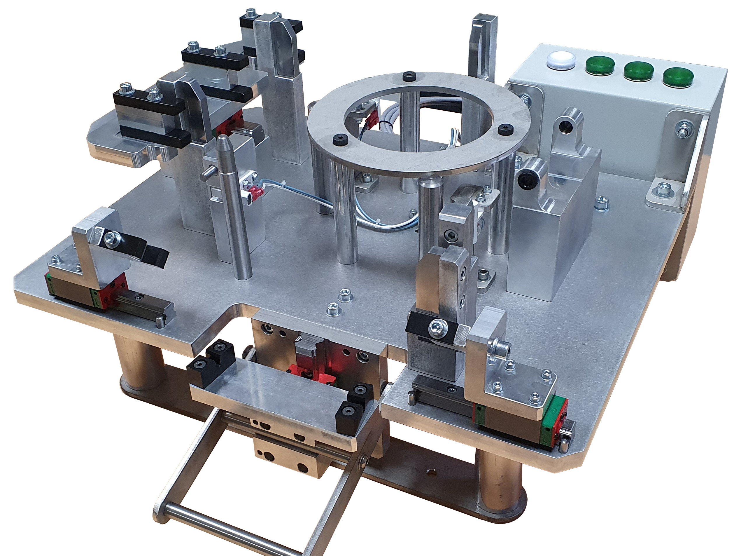 Outillage permettant une série de contrôles dimensionnels de pièces métalliques volumineuses sans manipulations.