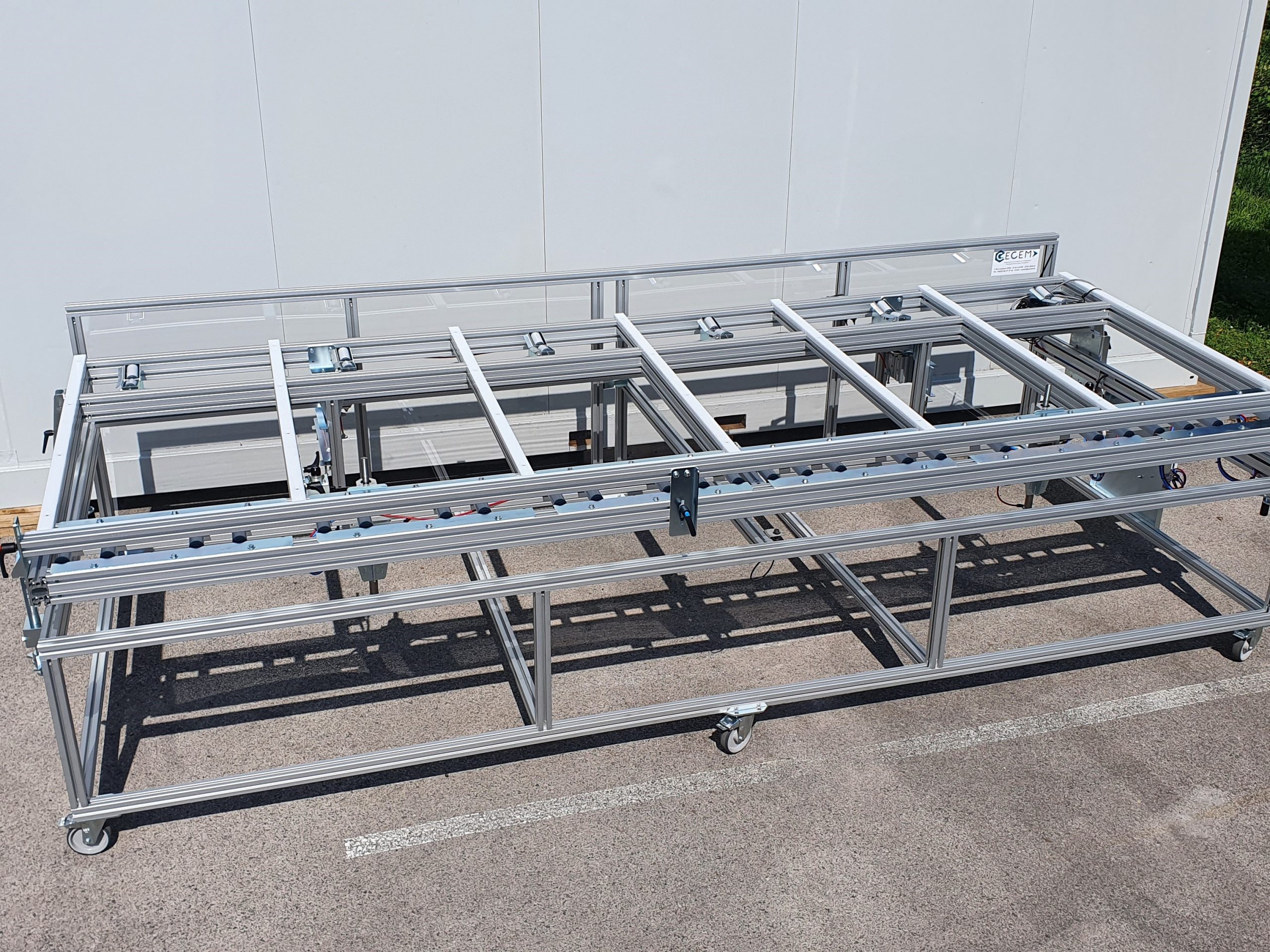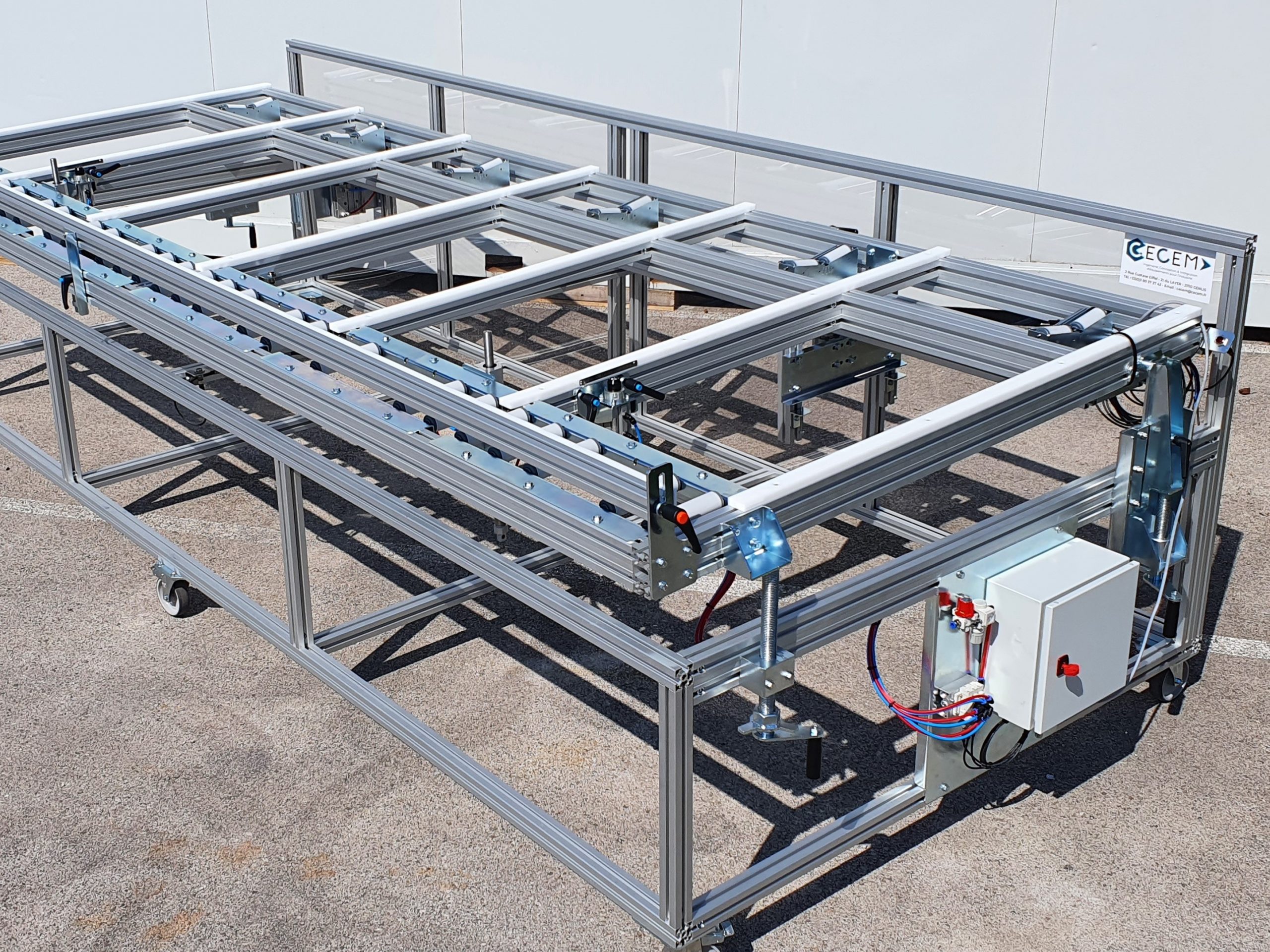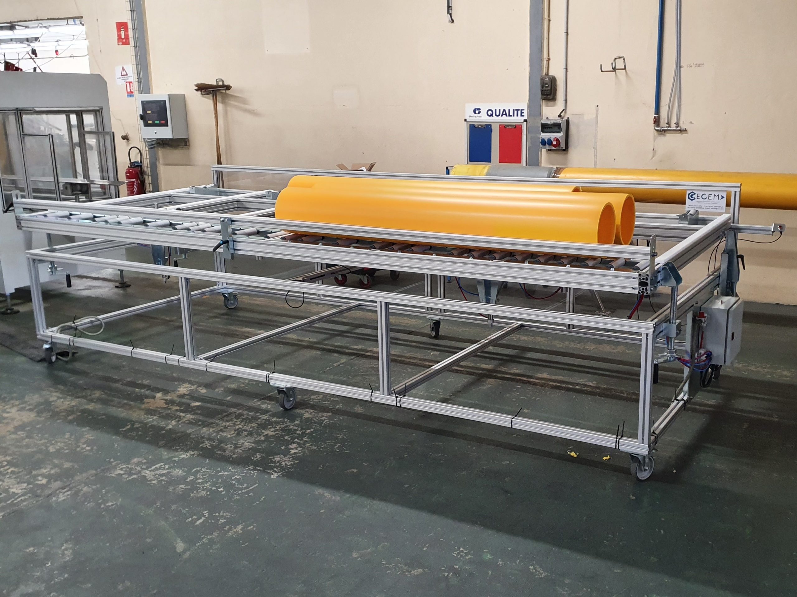 Ce système permet d’accumuler des profilés plastiques de 5m, en sortie d’une ligne d’extrusion, et de les libérer un par un pour pouvoir les manipuler facilement.