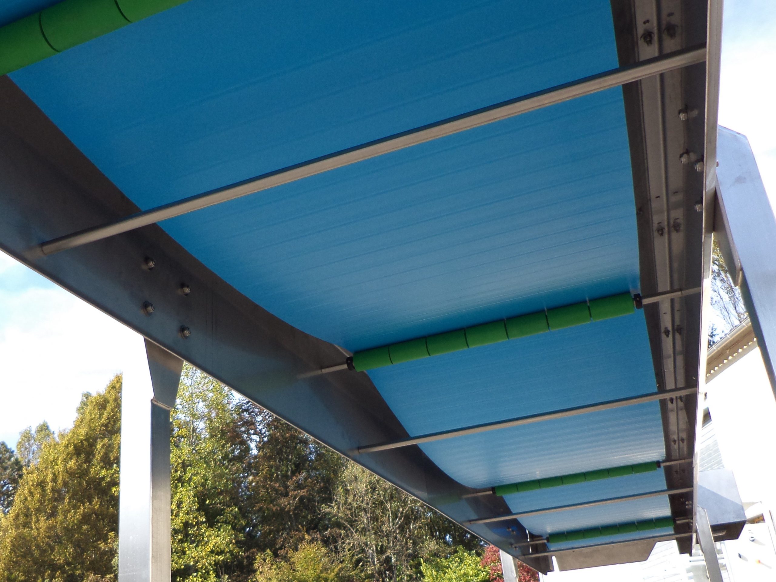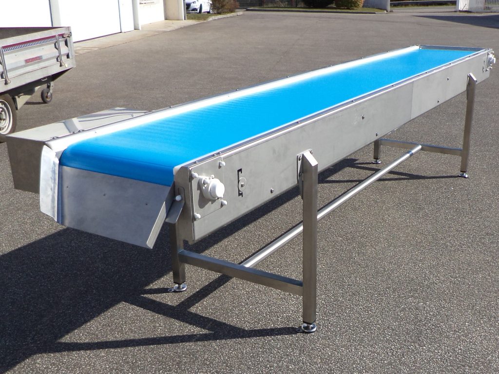 Convoyeur à bande longueur 6m largeur 800 mm pour le tri de produits agro-alimentaires.